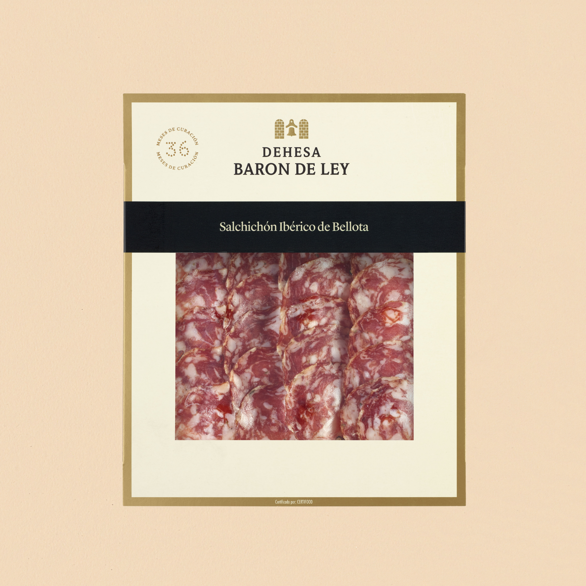 Seguir comprando "Vergessen Sie alles, was Sie über Salami zu wissen glaubten. Unsere Iberische Edelsalami (Salchichón Ibérico de Bellota) ist ein Fest für die Sinne, das die Essenz der spanischen Dehesa in jede Scheibe bannt. Sie ist das Ergebnis von Freiheit, Leidenschaft und der Meisterschaft von Dehesa Barón de Ley.